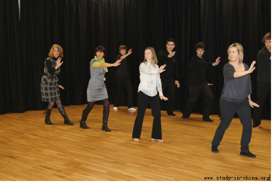 Headteacher, Mrs Storey(left one) and the staff are learning Taijiquan.