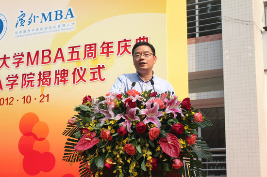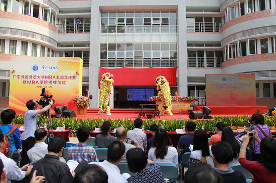 Oct. 25th —The fifth anniversary celebration of the opening of GDUFS' MBA School was held on the north campus on October 21st. Vice President Youqi Shi chaired the ceremony with alumni, company representatives, and government officials. Teachers and students also attended.