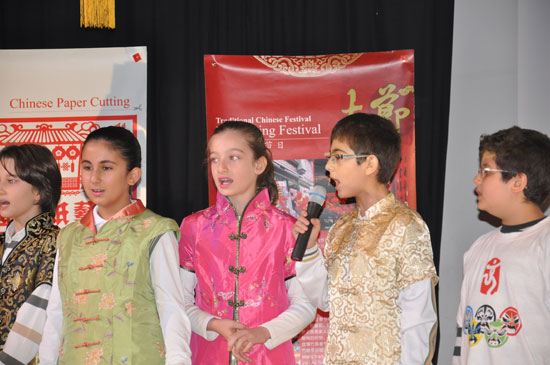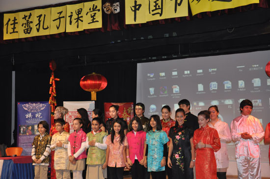 At the beginning of the program, the Chinese traditional music cheered the whole audience. A group of students in Chinese traditional clothes - cheongsam, costume, Tai Chi wear walked into the auditorium and showed on the stage, saying “Nihao” and “Huanying” to the audience, and warm applauses burst from the crowd. The following Chinese song chorus, the Chinese knowledge quiz and other programs attracted a large number of children to participate in.