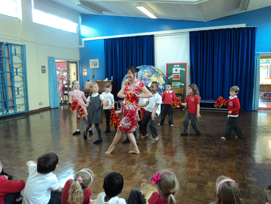 South Wootton infant school ,one of the link schools with KES (King Edward VII School), there are 190 kids there, in order to open the students’ horizon, the school decided to take the kids to travel around the world. They stayed one day in each main country in each continent. This week, the kids travelled to Asia; they would go to China, Japan, and India. Today, they began their travelling in China. They took plane to each country, and got a Chinese stamp on their passport.