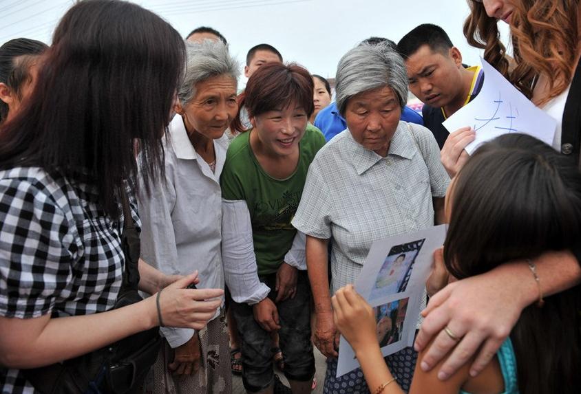 On July 15, a 9-year-old abandoned girl was seaching her maternal mom in Huainan Anhui province with her sisters and her American Mom Maria who adopted her in 2005, beholding pictures of her in age 2.