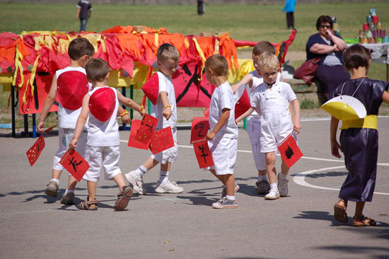 The event was jointly hosted by volunteer teachers dispatched by the Confucius Institute of Toulouse and Ms. Bobot, Principal of the High School. The performance was opened by dances rehearsed for long by the students of the kindergarten and primary school grade by grade. All dances were selected based on Chinese culture and Chinese elements. “The Little Swallow”, “Dragon”, “Yin and Yang” performed by the kindergarten students; “Panda Babies”, “Prince and Princess”, “Flying Butterflies”, “Descendants of the Dragon”, “Martial Arts Fighting” by students of the primary school department not only showcased the long-standing and profound Chinese culture, but also conveyed the vigorous and positive spiritual attitude of modern China. Then, students sang Chinese songs. At last, all teachers and students sang “Le Drapeau” (meaning the same flag) while waving flags of the two countries.