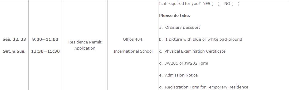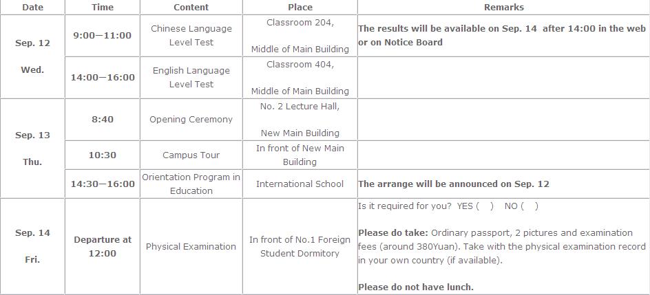 Schedule for New Undergraduates in English Program, September 2012 in BUAA