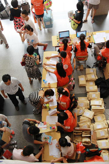On the registration day, lots of volunteers devoted themselves into the helping work. Besides setting up booths for registration, handing out leaflets and assisting luggage lifting, they also did some other counseling and guiding work.