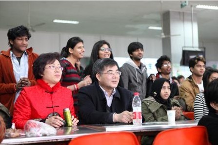 For the coming spring festival, OEC held a party on February 4, 2013 for overseas students to celebrate it. President of Jiangsu University, Prof. Yuan Shouqi, joined the party and did the lottery draw for teachers and students. The president together with all the teachers and students expressed their best wishes to all the citizens here in Zhenjiang through Zhenjiang TV station.