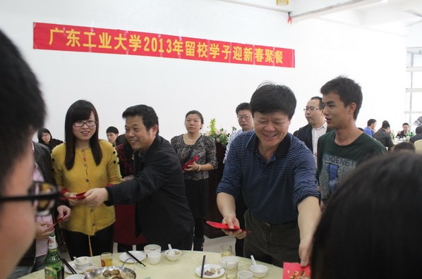 On February 6, University Leaders Su Yifan, Chen Xin, Mi Yinjun, Zhang Xueli have celebrated Spring Festival with 200 students who stayed in the University for Winter Holiday. In the New Year Speech, Pesident Chen Xin extended his best wishes to all the students and hope for a happy and fruitful year for GDUT. He said that GDUT was home to every student and hoped that the whole faculty would work together to better serve the university and the students. As a tradition, the university leaders sent out lucky money to the students as a symbol of best wish and good luck. Heads of Graduate’s Office, Students Affair Office and all the Schools have attended the New Year Ceremony.