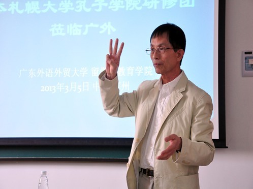 The delegation from Japan was warmly received by Dean Liang Xuehong from the International Education Institute. Since 2006, the Confucius Institute of Sapporo University has made six visits the GDUFS and has a sent a total of 110 students to our university. Liang said that through the joint efforts of the two universities, the Confucius Institute in Sapporo has achieved significant success and played a positive role in promoting non-governmental exchange between the two schools.