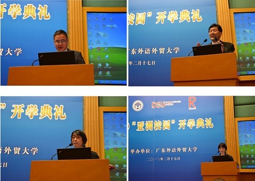 The opening ceremony of the mobile curriculum for the project "Asian Colleges" was held at GDUFS on Feb. 17th. the Vice President of GDUFS Fang Fanquan, Dean Duoyou from the faculty of Asian Language and Culture, and delegates from Japan as well as Korea attended the opening ceremony.