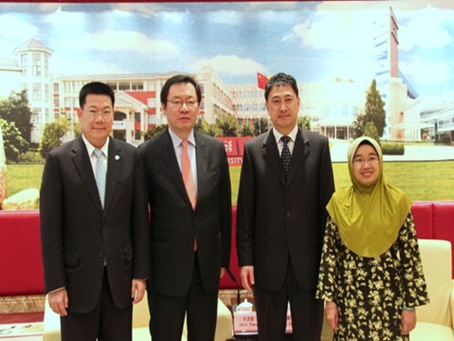 Before the ceremony, Chang Jekuk, President of Dongseo University and Dr. Zuraidah Mohd Zain, Vice Chancellor from the University of Malaysia Perlis (UniMAP), visited GDUFS accompanied by Vice President Fang Fanquan and met overseas students from the Faculty of Asian Languages and Cultures.