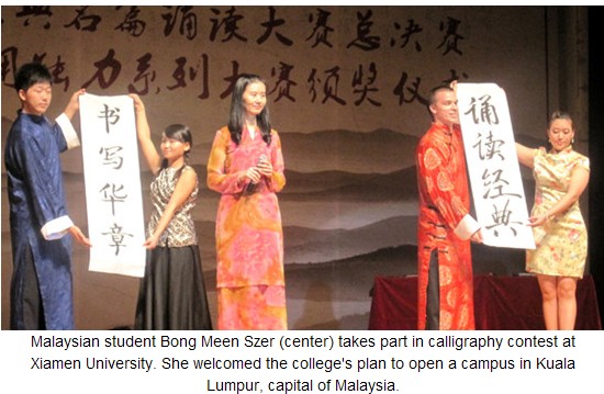 Najib Razak, the prime minister of Malaysia, invited Chinese universities to set up campuses in his country. Chinese education authorities picked Xiamen University because of its long and lasting ties with Malaysia.