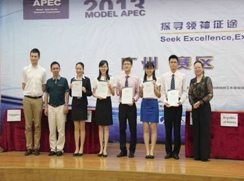 The contest is co-organized by Model Asia-Pacific Economic Cooperation and China Youth Development Service Center, undertaken by GDUFS. Participants covered 6 best-known universities and the final winner of Model-APEC final will be granted the chance of attending APEC Ministerial Meeting in Bali, 2013 as the youth delegates of China.
