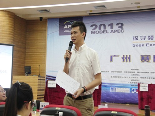 The 2013 Model APEC national quarter-final also known as the 2013 Model-APEC Guangdong final was successfully held in the Library Multi-Function Hall. Sixteen students from various universities in Guangdong with various majors, serving as delegates from sixteen Asian-pacific countries and regions, attended the simulated conference. Finally, the top five contestants, including Chen Qiong and Yi Zhenyu from GDUFS, secured their national final places with their excellent performance.