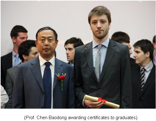 84 international students including French students from IPSA under master grogram, undergraduates, and Chinese language students were awarded certificates by Prof. Chen Baodong, Executive Vice President of SAU. Prof. Chen also extended his best wishes to all the graduates.