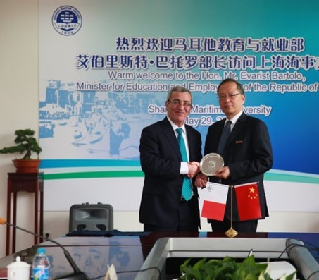 On May 29th, the Hon. Mr. Evarist Bartolo, Minister for Education and Employment of the Republic of Malta, and Prof. Juanito Camilleri, Rector of University of Malta visited Shanghai Maritime University. Prof. Yu Shicheng, Chairman of University Council of SMU, Prof. Jin Yongxing, Vice President of SMU, and heads of related offices and departments met with the guests.