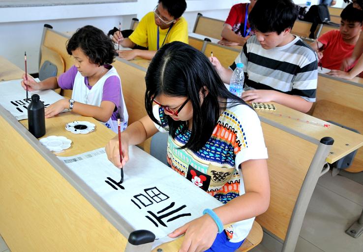 Practising Chinese calligraphy