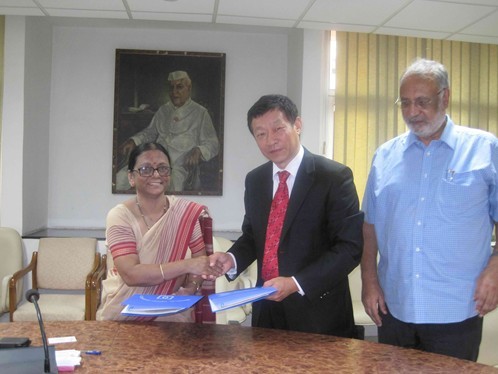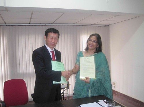 Vice President Xu then visited Sino-India Research Institute and met Alka Acharya, Dean of the Institute, Sabraee Mitra and other researchers. In the meeting, Vice President Xu highly praised the institute`s outstanding works and said that GDUFS was willing to offer certain information for their studies. Sino-India Research Institute stated that they were also willing to set up cooperation with GDUFS and looking forward to their mutual achievement in the future. After the meeting, the Delegation and the Research Institute signed up cooperation memorandum.