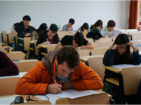 Prospective foreign students taking an exam, on May 10.