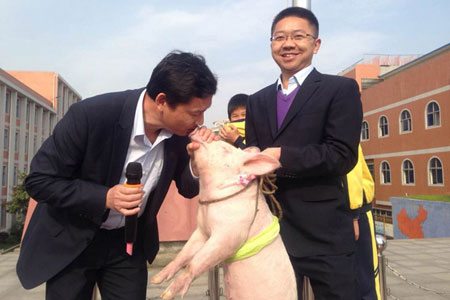 Hubei Vice Principal Kisses Pig to Reward Students for Not Littering