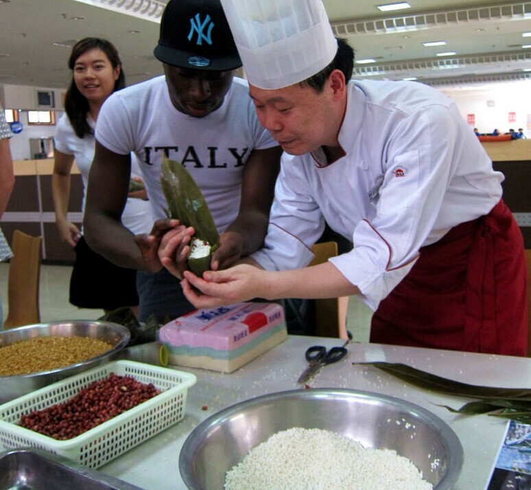 With the advent of Dragon Boat Festival, everywhere smells of Zongzi (A traditional food made of rice and other ingredients in memory of a famous politician and writer named Qu Yuan).InternationalCollegeand catering service center carried out a Zongzi-making activities themed “Zongzi Comes to You in Dragon Boat Festival” and overseas students and Chinese students gathered in the Bowen Canteen to have a close look of this Chinese tradition.