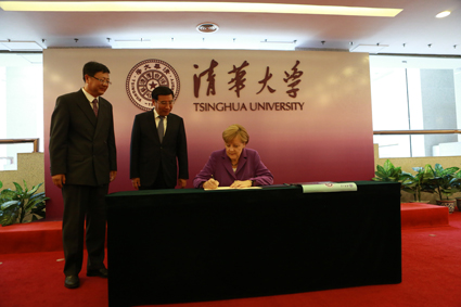 German Chancellor Angela Merkel delivered a speech at Tsinghua