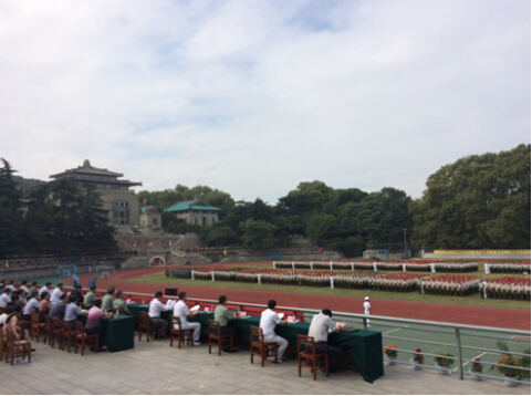 September 29th, 2015, it was a memorable morning. The sun cast its sunshine through the slightly cloudy sky, dispelling the last bits of the morning chill as well as the fatigue of the two-week military training. In rhythm with Following the rhythm of the majestic martial music, thousands of WHU freshmen marched across the Olympic Track Field in arrays. Marching from afar to the rostrum, they saluted with spirited, sonorous slogans like valiant soldiers when spontaneous applause burst out from the audience. For all of them, it was a morning which has been marked with countless unforgettable moments that deserved to be treasured for the rest of their lives.