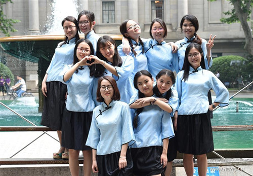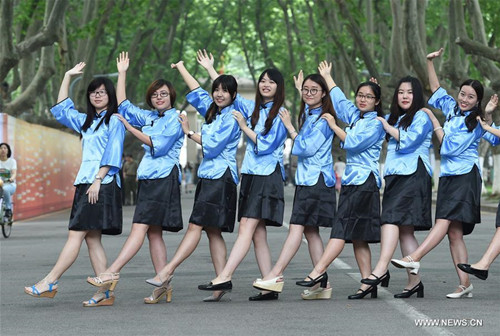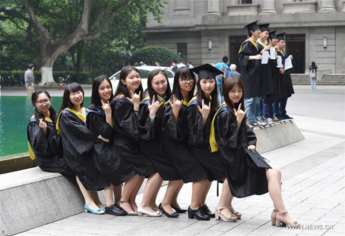 NANJING, June 6, 2016 (Xinhua) -- Students pose for a photo on the campus of Southeast University in Nanjing, east China's Jiangsu Province, June 6, 2016. The Southeast University celebrated its 114th founding anniversary on Monday. (Xinhua/Sun Can)