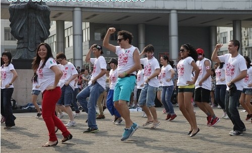 At 4 p.m. of July 28th, an extraordinary "flash" performance was presented by Chinese and foreign students of HUST in front of the No. 9 East Teaching Building to celebrate the 60th anniversary of HUST.(2012/7/5 0:00:00)