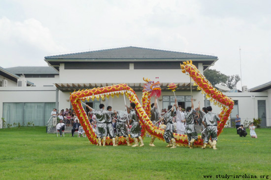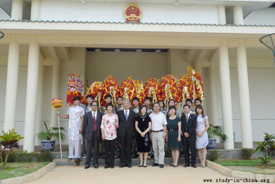 Learning JXNU Wushu and dragon dance delegation’s visit to Madagascar, Chinese ambassador to Madagascar, his excellence Shen Yongxiang gave a welcome reception for the delegation and arranged its first performance in Chinese embassy in Antananarivo. The performance was presented on the 20th of November, local Chinese, members of the association of students studied in China, all diplomats from Chinese embassy, and mandarin teachers in Malagasy capital Antananarivo, all together 200 people were present in the first performance.